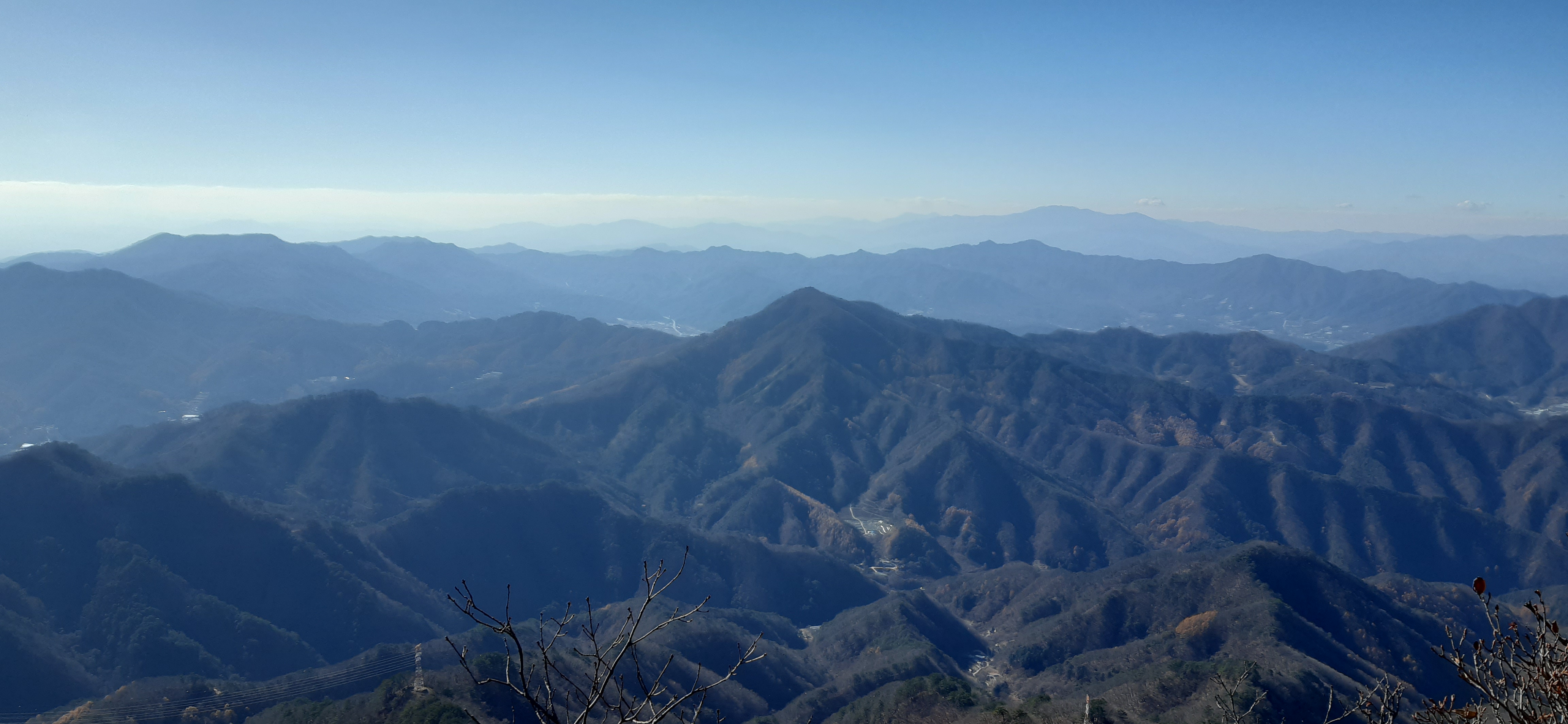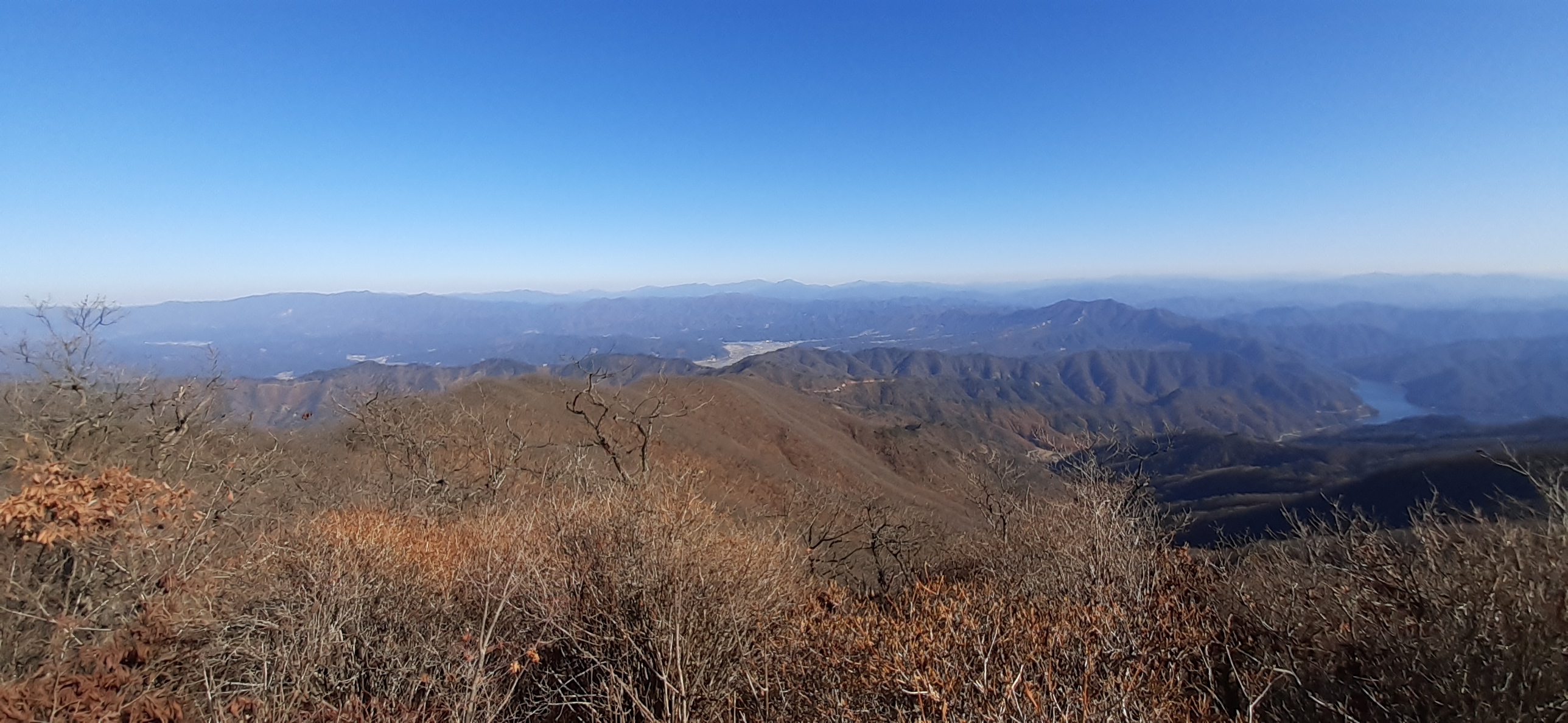 ▼ 멀리 하늘금이 가리봉인데 잡목과 너무 흐릿해서 잘 구분이 안된다. 우측으로 가리산