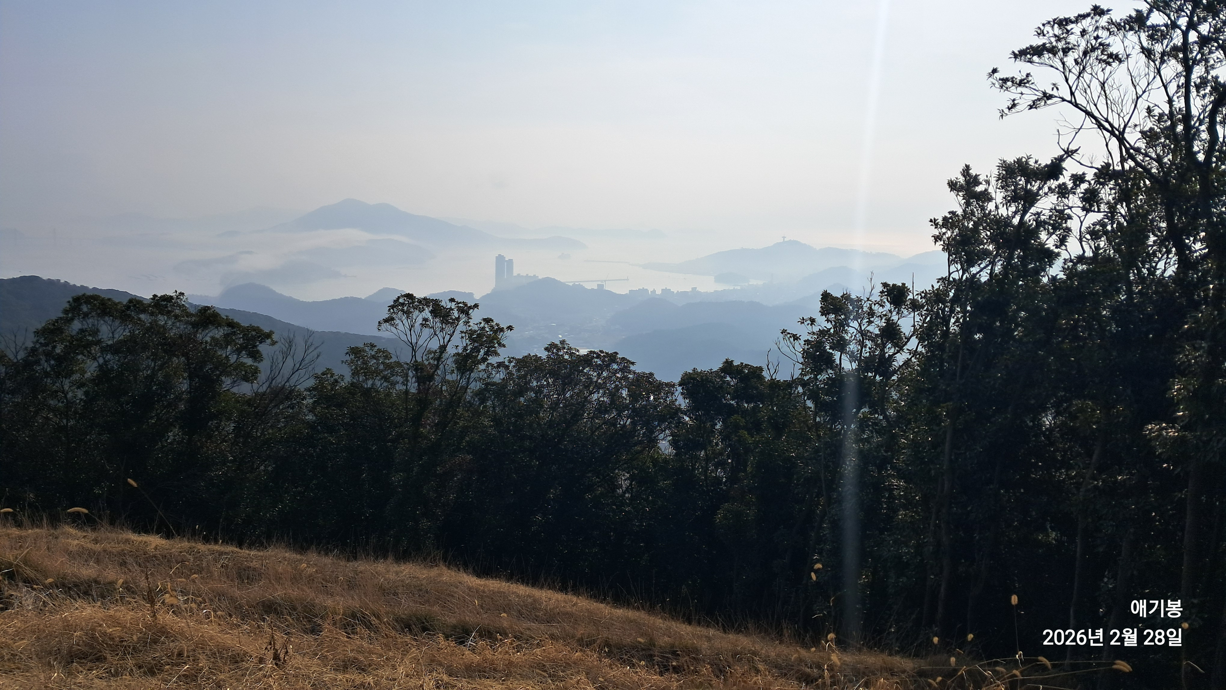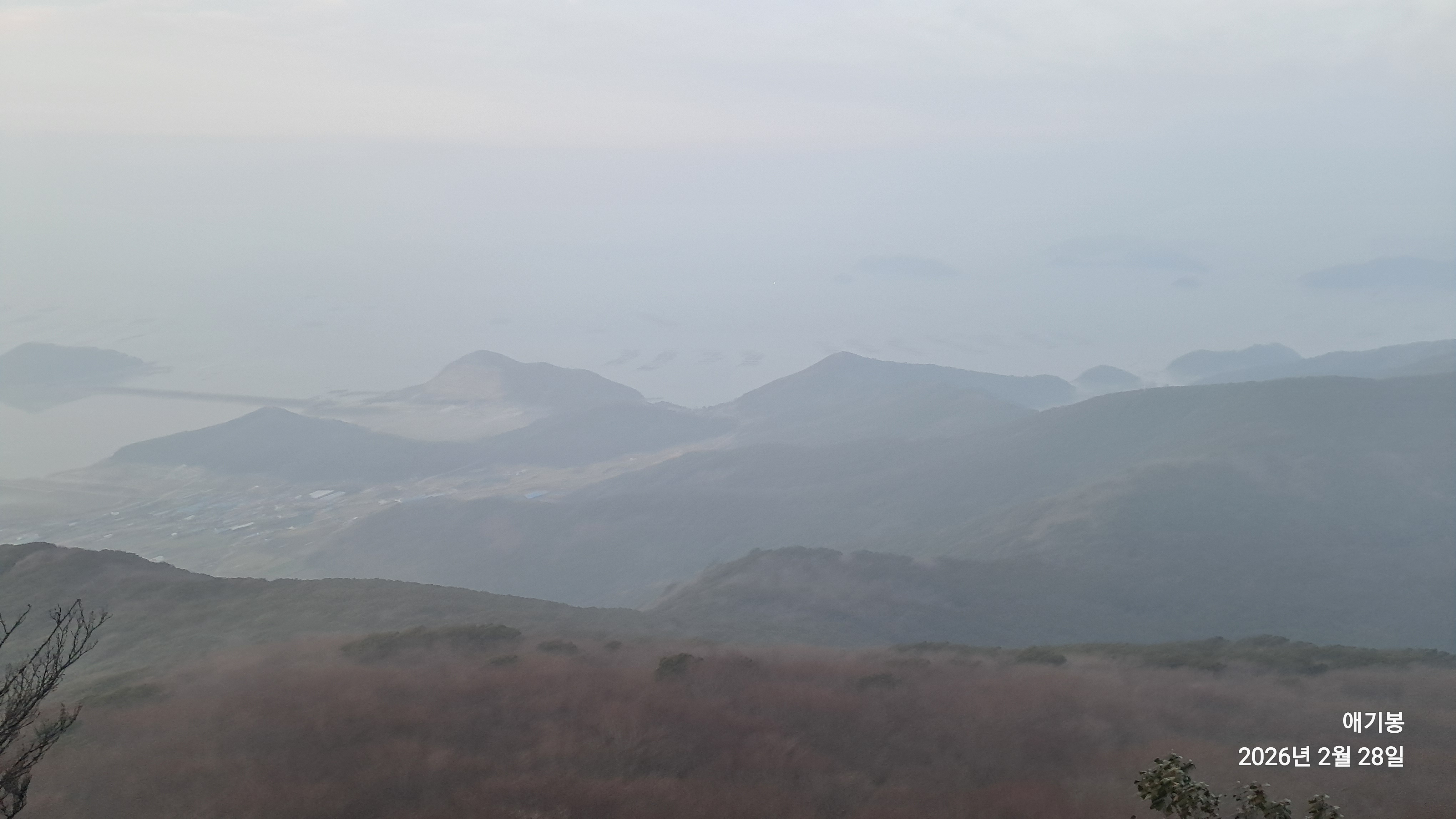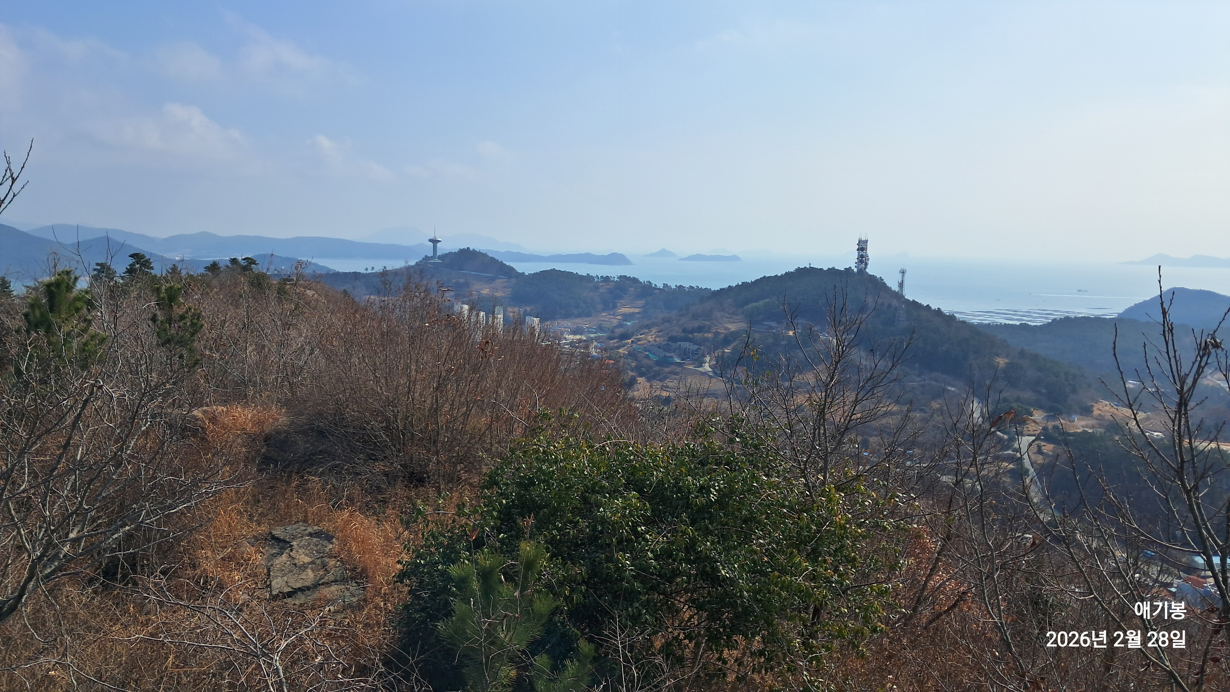 곧이어 임도를 만나고 잠시 쉬었다가 길을 나선다. 잔잔한 능선을 지쳐가면 계속해서 내림길의 연속이고 잠깐 올랐다가 쭈욱 내려간다.날도 서서히 개어 안개도 걷히면서 주변의 바다와 섬들이 차츰 눈에 들어온다. 완도시내가 가까와 지고 초개산을 앞두고 구름다리를 만난다. 다리를 건너 초개산을 올라가면 남쪽의 바다가 펼쳐지고 서망봉에 올라가 점심을 해결한다. 날은 포근하고 햇빛이 따뜻해 약간의 그늘진곳에서 점심을 먹고 하산을 하니 시내변두리에 도착하고 오늘 처음으로 동백나무꽃을 바라본다. 시내를 지나 다시 오름짓을 하면 남망봉에 오르고 1키로 남짓 지나가면 마지막 봉우리인 완도타워가 있는 동망봉에 도착한다. 시내전경과 지나온 능선을 바라보며 하산을 마무리하면서 완도항에 도착한다. 뒷풀이 장소가 마땅치않아 서울에서 하기로 하고 오늘산행을 마무리한다.
